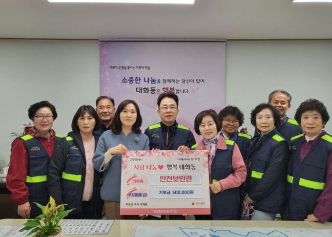 이형균 대화동 안전보안관 대표는 “지역 주민들의 관심과 봉사자들의 참여로 마련된 소중한 기부금인 만큼 꼭 필요한 곳에 쓰이길 바란다”며 “앞으로도 주민 안전은 물론 나눔과 봉사를 통해 따뜻한 지역사회를 만드는 데 앞장서겠다”고 밝혔다.