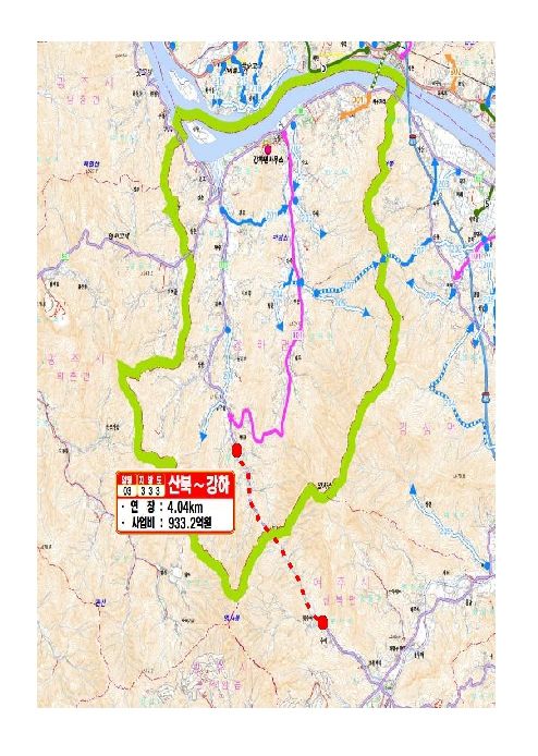 이번 계획에 반영된 ‘지방도333호선 산북~강하 간 도로건설사업’은 양평군 강하면 항금리와 여주시 산북면을 연결하는 지역 간 지방도 노선으로, 군은 이 가운데 미개설로 단절된 4.04㎞ 구간에 총사업비 933억 원을 투입해 2차로로 신설할 계획이다.