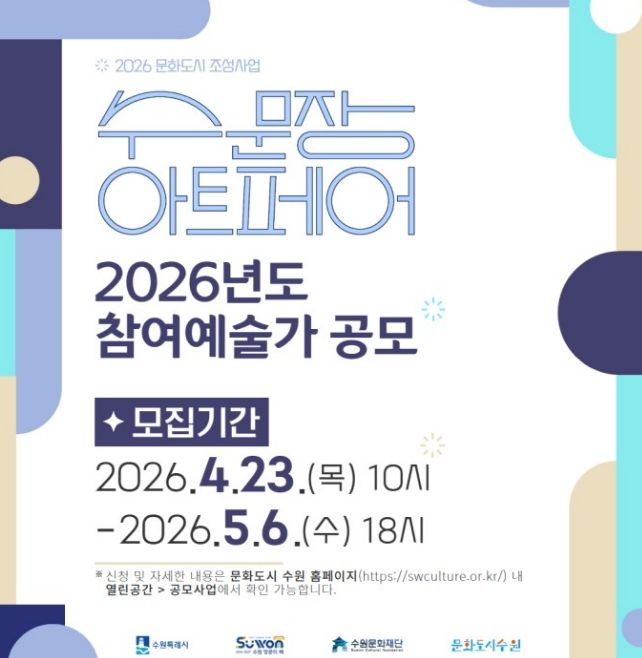 (비전21뉴스) 수원문화재단은 지역 예술가의 작품 판로 확대와 지속가능한 창작 활동 기반 마련을 위해 2026년 ‘수문장 아트페어’ 참여 예술가를 모집한다.