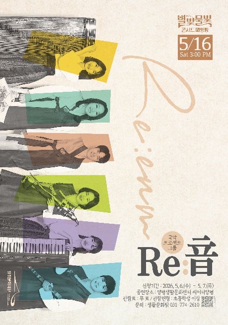 (비전21뉴스) 양평문화재단은 오는 5월 16일 오후 3시, 양평문화재단 2층 씨어터양평에서 ‘별빛물빛 콘서트 in 양평’ 5월 정기공연으로 국악 프로젝트 그룹 Re:音(리음)의 공연 ‘국악의 빛으로 물든 디즈니’를 선보인다.