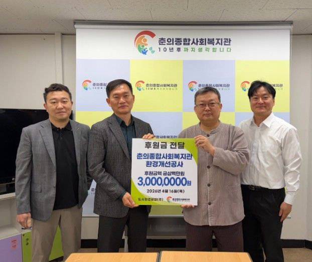 (비전21뉴스) 도시환경실업(주)는 지역사회 복지환경 개선과 나눔 문화 확산을 위해 춘의종합사회복지관에 환경개선공사 후원금 300만원을 전달했다. 이번 후원은 복지관 시설 환경을 개선해 지역 주민들이 보다 안전하고 쾌적한 환경에서 복지서비스를 이용할 수 있도록 지원하기 위해 마련됐다.