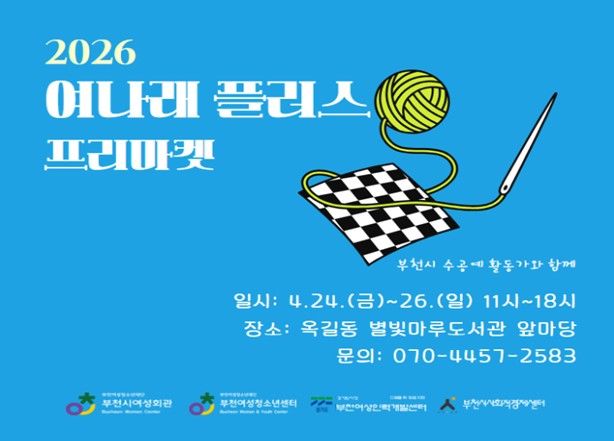 (비전21뉴스) 부천여성청소년재단이 운영하는 부천시여성회관과 부천여성청소년센터는 오는 4월 24일부터 26일까지 3일간, 옥길동 별빛마루도서관 앞마당에서 지역 여성 수공예 작가들의 작품을 판매하는‘여나래 플러스 프리마켓’을 개최한다.