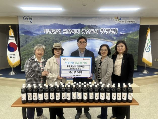 (비전21뉴스) 가평군농협 청평지점 농가주부모임이 20일 지역 내 어려운 이웃을 위해 직접 만든 맛간장 50개를 청평면에 기탁했다.