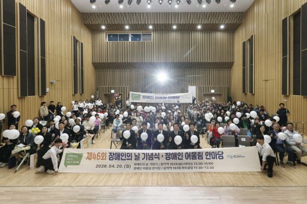 (비전21뉴스) 가평군은 20일 가평군장애인복지관 주관으로 ‘제46회 장애인의 날 기념식 및 화합 행사’를 개최했다. 음악역1939에서 열린 이번 행사에는 장애인과 시설·단체 관계자, 지역 주민 등 400여 명이 참석해 의미 있는 소통의 시간을 가졌다.