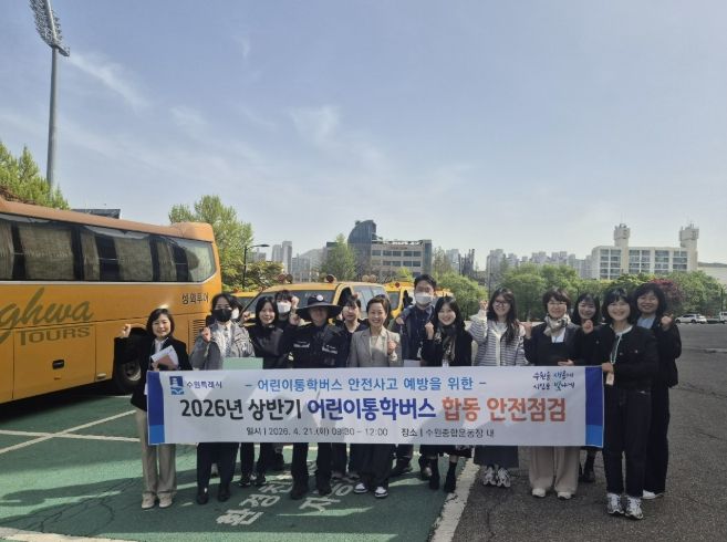 (비전21뉴스) 수원특례시는 21일 수원종합운동장 주차구역에서 수원 장안·권선·팔달·영통경찰서, 한국교통안전공단과 함께 ‘2026년 상반기 어린이통학버스 합동 안전점검’을 했다.