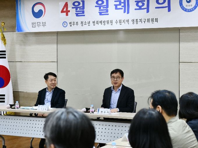 (비전21뉴스) 수원시 영통구는 지난 21일, 법무부 청소년 범죄예방위원 수원지역 영통지구위원회(이하 ‘범죄예방위원회’) 주관으로 영통구청 상황실에서 4월 월례회의를 개최했다.