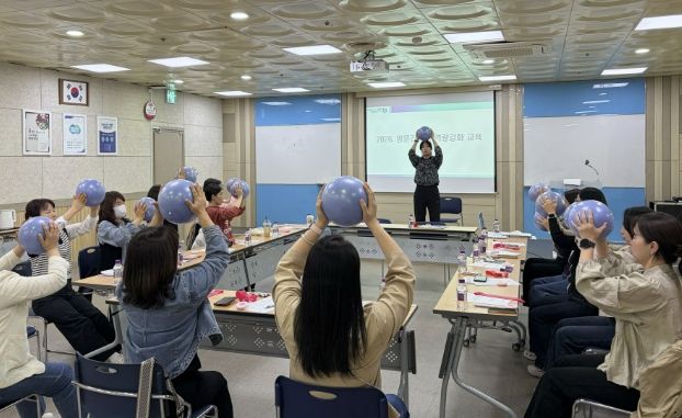 이날 교육은 방문간호사의 건강관리 역량 강화를 위해 마련됐으며, 운동교육과 구강관리 실습 중심으로 진행됐으며, 통합건강돌봄센터 소속 운동지도사와 치과위생사가 강사로 참여해 현장에서 활용 가능한 실무 중심 교육을 제공했다.