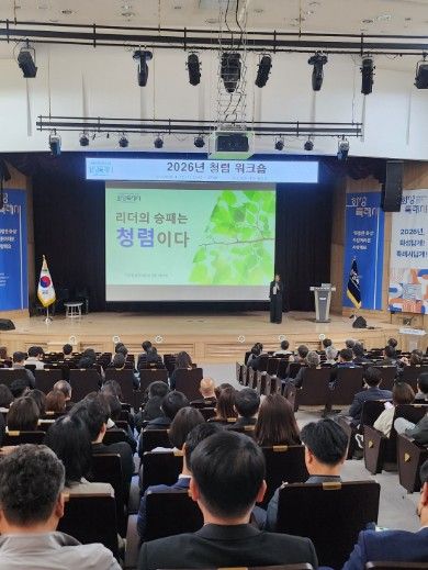 (비전21뉴스) 화성특례시는 22일 시청 대강당에서 고위공직자를 대상으로 ‘2026년 청렴 워크숍’을 개최했다. 이번 워크숍은 조직을 이끄는 고위공직자의 청렴 리더십을 강화하고, 반부패 관련 법령에 대한 이해를 높여 공정하고 투명한 공직문화를 정착시키기 위해 마련됐다.
