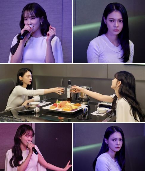 이런 가운데 백서라와 주세빈이 오는 25일(토) 방송될 13회에서 심상치 않은 서늘한 기류를 조성하는 ‘가라오케 독대’로 불길함을 자아낸다. 극 중 모모(김진주 뇌)와 금바라가 가라오케에서 만난 장면. 모모(김진주 뇌)는 갑자기 무대로 나서고, 댄스 동작까지 가미해 노래를 열창한다. 그때 노래를 듣던 금바라가 누군가를 떠올리며 얼음처럼 굳어버리는 것. 금바라가 소름 돋는 표정을 지은 이유는 무엇일지, 노래 삼매경에 빠진 모모(김진주 뇌)의 의도가 궁금증을 높인다.
