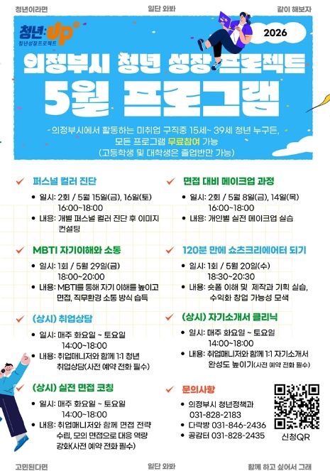 (비전21뉴스) 의정부시는 미취업 청년의 취업 준비 역량 강화를 위해 ‘청년성장프로젝트’ 5월 프로그램을 운영한다.