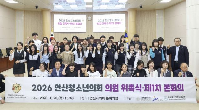 (비전21뉴스) 안산청소년의회가 지난 23일 열린 ‘2026 안산청소년의회 의원 위촉식’과 ‘안산청소년의회 제1차 본회의’를 시작으로 본격적인 활동에 들어갔다.