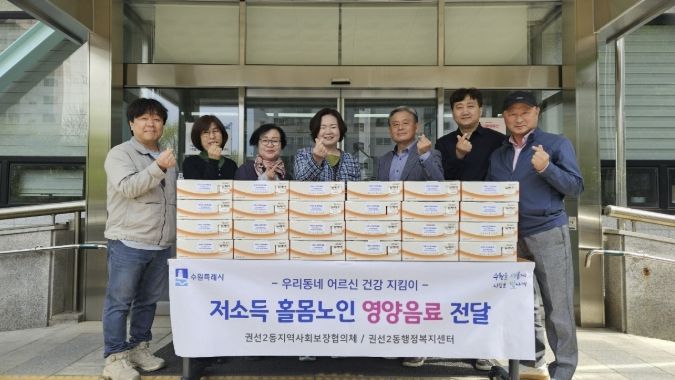 (비전21뉴스) 수원시 권선구 권선2동 지역사회보장협의체는 지난 23일, 저소득 홀몸노인 건강증진과 정서적 안정을 위한 “우리 동네 어르신 건강지킴이 영양음료 전달사업”을 진행했다.