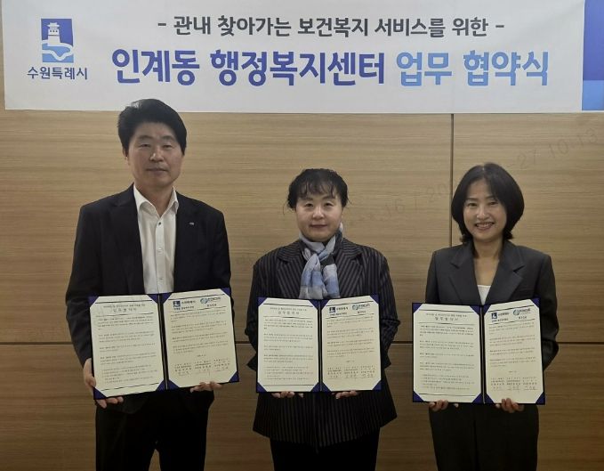 (비전21뉴스) 수원시 팔달구 인계동은 지난 24일, 지역사회보장협의체과 한전MCS(주) 경기지사 및 직할지점과 함께 취약계층 발굴과 지속적인 인적안전망 활동 참여를 위한 업무 협약을 체결했다.