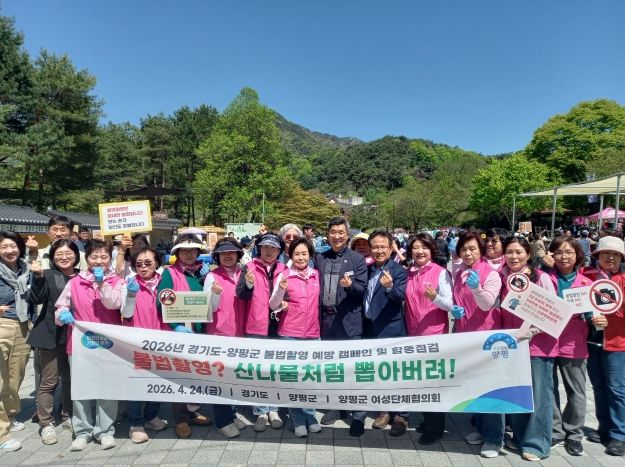 (비전21뉴스) 양평군은 지난 24일 용문산 산나물 축제를 찾은 군민과 관광객을 대상으로 용문산관광단지 일대에서 불법 촬영 예방 합동 캠페인을 실시하며 군민 안전 확보에 나섰다.