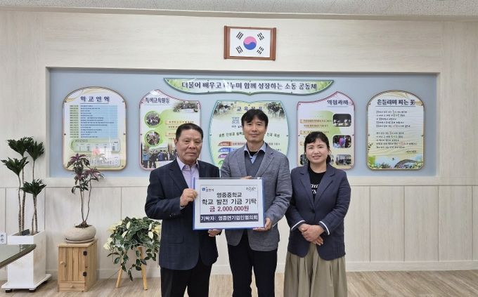 이현주 영중중학교장은 “영중면기업인협의회의 관심과 지원에 감사드린다”며 “기탁금은 학생들이 바르게 성장할 수 있도록 소중히 사용하겠다”고 전했다.