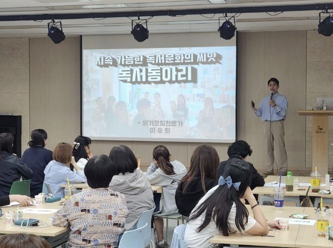 워크숍은 우수 사례 발표를 시작으로, 2026년 작은도서관 운영 지원 안내, 참여자 간 소통 및 교류 시간, 독서동아리 운영 역량 강화 교육 순으로 진행됐다. 특히 현장에서 바로 적용할 수 있는 사례 중심 발표와 강의가 이어져 참가자들의 집중도를 높였다.