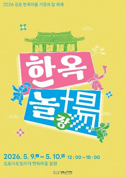 (비전21뉴스) 김포문화재단은 오는 5월 9일부터 5월 10일까지 양일간 김포아트빌리지 한옥마을 일대에서 ‘2026 김포 한옥마을 가정의 달 축제 '한옥놀장(場)'’을 개최한다고 밝혔다.