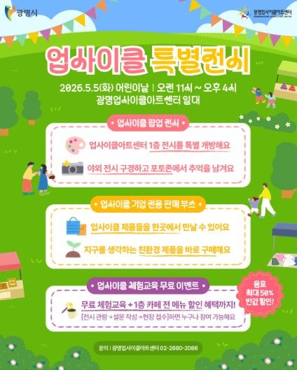 (비전21뉴스) 광명시 광명업사이클아트센터는 오는 5월 5일 어린이날을 맞아 자원순환 가치를 예술과 체험으로 즐기는 ‘업사이클 특별전시’를 운영한다.