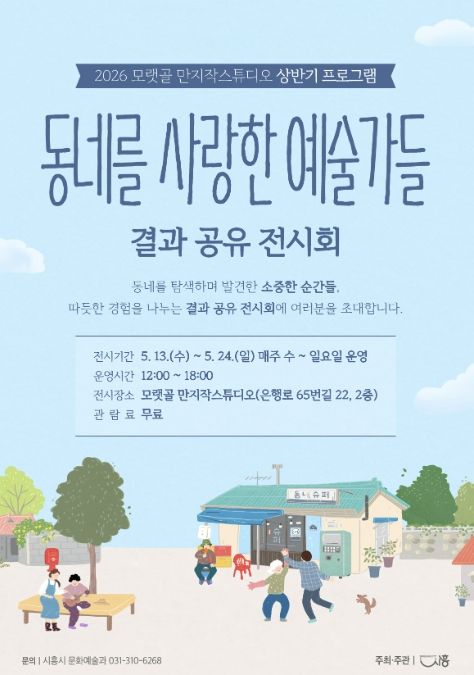 (비전21뉴스) 시흥시는 오는 5월 13일부터 24일까지 문화재생공간 모랫골 만지작스튜디오에서 2026년 상반기 프로그램 ‘동네를 사랑한 예술가들’ 결과 공유 전시를 개최한다.
