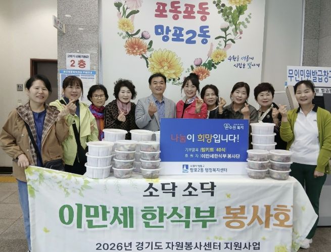 이용태 망포2동장은 “이웃을 위한 나눔을 실천해 주신 이만세 한식부 봉사회에 깊이 감사드린다”며 “앞으로도 민·관 협력을 통해 주민들이 체감할 수 있는 복지서비스를 확대해 나가겠다”고 밝혔다.