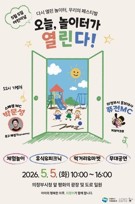 (비전21뉴스) 의정부시는 제104회 어린이날을 맞아 5월 5일 오전 10시부터 오후 4시까지 의정부시청 앞 평화의 광장 및 도로 일원에서 ‘2026년 의정부시 어린이날 기념행사’를 개최한다.