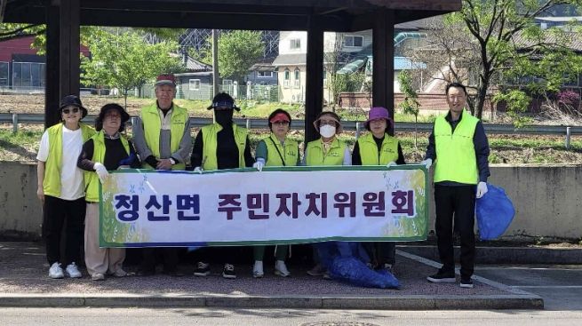 이날 활동은 청산면 주민자치위원 10여 명이 참석한 가운데, 대전리 대전2교차로에서 대전3교차로에 이르는 인도 구간을 중심으로 진행됐다.