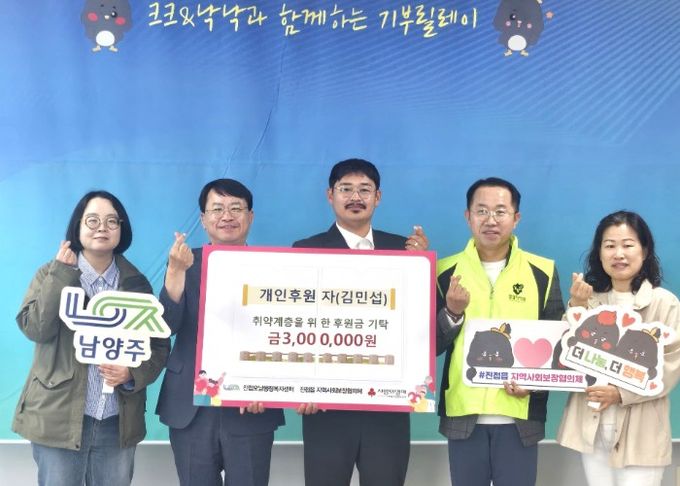 (비전21뉴스) 남양주시는 29일 진접오남행정복지센터에서 김민섭씨가 취약계층 지원을 위해 후원금 300만 원을 전달했다고 밝혔다.
