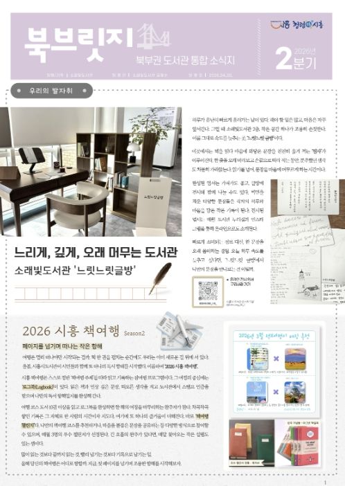 (비전21뉴스) 시흥시 소래빛도서관은 북부권 공공ㆍ작은도서관의 다양한 소식을 한눈에 전하는 분기별 소식지 ‘북브릿지(북부릿지)’ 2026년 2분기호를 발행했다.