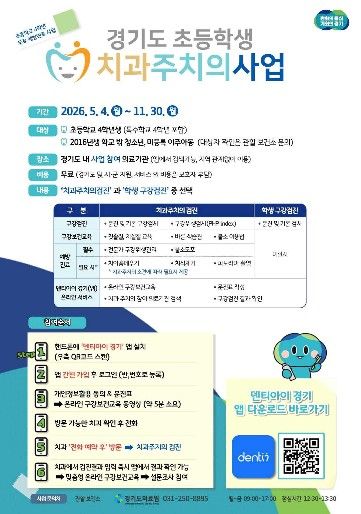(비전21뉴스) 평택시는 오는 5월 4일부터 11월 30일까지 관내 초등학교 4학년 학생들을 대상으로 ‘2026년 경기도 초등학생 치과주치의 사업’을 추진한다고 밝혔다.