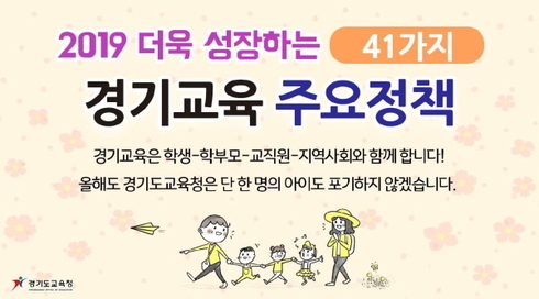 [비전21뉴스] 경기도교육청은 2019년 새롭게 변화되는 주요 교육정책에 대한 일반의 이해를 돕기 위해 ‘2019 더욱 성장하는 41가지 경기교육 주요 정책’ 안내 영상자료를 제작해 도교육청 홈페이지를 통해 제공한다.