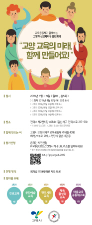 시는 고양형혁신교육 지원 사업이 학교와 지역사회의 협력을 바탕으로 하는 만큼, 다양한 교육주체들이 소통과 공감을 통해 사업 기획의 주체자로 참여할 수 있도록 모두에게 열려있는 고양형혁신교육 열린회의를 운영할 계획이다.