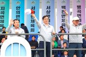 (비전21뉴스) 함양군은 군민의 소통과 화합, 건강 증진의 한마당인 ‘제64회 함양군민체육대회’가 지난 18일 함양공설운동장과 종목별 경기장에서 뜨거운 열기 속에 성공적으로 마무리됐다고 밝혔다. 함양군체육회가 주최하고 회원 종목단체에서 주관한 이번 대회는 11개 읍면에서 3,000여 명의 군민이 참가해 읍면 대항전 10개 종목과 클럽대항전 및 참여 경기 5개 종목에서 실력을 겨루며, 세대와 지역을 아우르는 소통과 화합의 장을 이뤘다. 대회는 11개 읍면이 저마다 준비한 개성 넘치는 입장식으로 막이 올랐다. 이어 전날(17일) 천령봉에서 채화된 성화는 군청 광장에 안치됐다가 대회 당일 공설운동장에 도착했으며, 강병구·이장겸 선수의 점화로 함양의 뜨거운 열정이 타올랐다. 성화 봉송은 ‘함양 정착, 도민체전 성적, 함양 축구 미래, 체육 원로, 축제 위원장’ 등 5대 테마로 구성되어 의미를 더했다. 개회식에서는 40명으로 구성된 함양군 라인댄스팀의 축하공연이 분위기를 돋우었고, 개회 선언을 시작으로 안병명 체육회장의 대회사, 진병영 함양군수의 격려사, 김윤택 의장 등의 축사와 양재생 부산상공회의소 회장과