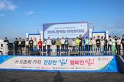 (비전21뉴스) 평택시의회는 19일, 평택항 엠에스로지스틱 일원(평택시 포승읍 신영리)에서 개최된‘2025 평택항 마라톤대회’에 참석해 전국에서 모인 마라토너들의 열정을 응원했다. 이날 행사에는 강정구 평택시의회의장을 비롯한 시의원이 참석하고 평택시 체육회장, 평택시육상연맹 관계자 등 내외빈과 참가자 약 7,300여명이 함께했다. 이번 평택항 마라톤대회는 스트레칭으로 몸을 푼 뒤 하프코스(21.0975km)·10km,·5km 3개 부문으로 나눠 출발했다. 하프코스는 평택당진항 자유무역지역을 지나 평택항 서부두 내항방면을 거쳐 퓨리나 평택공장까지, 10km구간은 서부두 해안도로까지, 5km구간은 평택항 서부두 내항방면까지 각각 반환점으로 삼는 코스다. 강정구 의장은 “마라토너가 달리는 이유는 끝이 아닌 여정 그 자체에 있기에 중요한 것은 완주가 아니라 그 과정 속에서 자신을 발견하는 일”이라며, “평택시의회도 건강한 공동체 속에서 도전의 기쁨을 누릴 수 있도록 생활체육 기반을 튼튼히 다지는 데 최선을 다하겠다”라고 전했다. 한편 올해로 25회를 맞는‘2025 평택항 마라톤대회’는 평택의