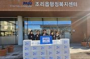 (비전21뉴스) 파주시 조리읍은 파주연천축협 금촌·월롱·조리 한우리회로부터 조리읍 취약계층을 위한 특별한 선물 꾸러미를 준비했다고 지난 8일 밝혔다. 이들은 돼지고기 1kg, 치즈돈가스, 한우 곰탕 등으로 구성된 ‘사랑의 꾸러미’25개를 조리읍에 전달하며 지역사회를 향한 따뜻한 마음을 나눴다. 이번 기부는 한우리회 회원들이 한마음으로 마련한 것으로, 주변에 어려운 이웃들이 연말 추위를 이겨내는 데 작은 힘이 되길 바라는 뜻을 담았다. 장순애 파주연천축협 금촌·월롱·조리 한우리회장은 “지역의 소외된 이웃들에게 조금이라도 도움이 되고 싶었다”라며 “앞으로도 지역사회의 든든한 이웃으로 나눔을 이어가겠다”라고 말했다. 봉상균 조리읍장은 “단순한 물품 전달이 아닌 지역사회가 함께한다는 마음을 전할 수 있어 의미가 크다”라며 감사를 전했다. 조리읍에서는 한우리회의 따뜻한 마음에 힘입어 다양한 나눔 활동이 계속 이어지고 있어, 어려운 이웃들에게 더욱 큰 희망과 위로를 전하고 있다.