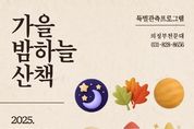 (비전21뉴스) 의정부과학도서관은 10월 30일부터 11월 1일까지 의정부천문대에서 특별 관측 행사 ‘가을 밤하늘 산책’을 운영한다. 이번 행사는 깊어가는 가을밤, 시민들이 천체 관측을 통해 자연과 과학의 아름다움을 체험할 수 있도록 마련했다. 행사는 오후 7시부터 9시까지 진행된다. 전문 해설과 함께 실제 관측을 체험할 수 있는 참여형 행사로 ▲달과 토성 관측 ▲천문우주 영상물 시청 ▲전시실 체험 ▲소원카드 달기 등으로 구성된다. 참여자들은 달과 토성의 고리를 직접 관측하고, 소원카드에 각자의 바람을 담아 별빛 아래에 걸어보는 체험도 즐길 수 있다. 행사는 과학문화에 대한 시민의 관심을 높이고 가족 단위의 참여를 확대하기 위해 무료로 진행한다. 별도의 사전 접수 없이 행사 당일 현장에서 참여할 수 있다. 과학도서관 관계자는 “의정부천문대가 과학과 자연이 어우러진 문화공간으로 자리잡을 수 있도록 앞으로도 다양한 프로그램을 운영할 것”이라며 “이번 특별 관측을 통해 가족과 함께 밤하늘을 바라보며 뜻깊은 시간을 보내길 바란다”고 말했다.