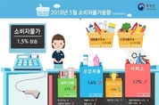 [사진]통계청 [비전21] 통계청이 1일 발표한 ‘2018년 5월 소비자물가동향’에 따르면 전월대비 0.1%, 전년동월대비 1.5% 각각 상승했다. 8개월 연속 1%대 성장률을 기록하고 있다. ◇ 농산물및석유류제외지수는 전월대비 0.1%, 전년동월대비 1.3% 각각 상승 식료품및에너지제외지수는 전월대비 0.1%, 전년동월대비 1.4% 각각 상승 ◇ 생활물가지수는 전월대비 변동 없으며, 전년동월대비 1.4% 상승 신선식품지수는 전월대비 2.5% 하락, 전년동월대비 4.5% 상승 지역별 소비자물가 동향은 전월대비 서울, 부산 등 5개 지역은 변동 없으며, 제주 0.4%, 광주, 전북, 전남은 0.2%, 인천 등 7개 지역은 0.1% 각각 상승 했다. 전년동월대비로는 부산 1.9%, 대구, 충북, 제주 1.8%, 대전 1.7%, 서울, 충남 1.6%, 경기, 전남 1.5%, 인천 등 4개 지역은 1.4%, 전북 1.3%, 울산, 강원 1.2% 각각 상승했다.