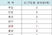 U-IT 사업 지역별 보급현황 [비전21] 강원도의 양식 생산량이 큰 폭으로 증가하고 있는 가운데 도내 양식업의 안전성이나 스마트 수준은 매우 저조한 것으로 나타났다. 정운천 의원이 해양수산부 통계를 분석한 결과, 강원도는 지난 1990년부터 지난해까지 연근해 어업의 생산량은 8만톤에서 4만1천톤으로 절반가까이 하락했으나, 동기간 양식업의 경우 133톤에서 5,357톤으로 40배가량 큰 폭의 상승을 보이고 있는 것으로 드러났다. 이처럼 강원도의 양식업이 활발해지는 가운데, 도내 올해 첫 고수온 피해가 발생했다. 국내 7월 평균 25도 등수온선이 2016년에는 태안과 울산인근에서, 2017년 백령도와 속초, 그리고 올해는 북한의 평안북도와 함경남도 인근까지 북상하여, 강원도도 더 이상 바다의 고수온 문제로부터 자유로울 수 없게 된 것이다. 올해 강원도의 고수온 양식업 피해는 넙치 송어 등 37만 마리 폐사에 약 4억 5천만원의 피해액이 발생했다. 이처럼, 이제 국내 어느 지역 할 것 없이 양식업의 고수온 피해가 발생하고 있으나, 국내 양식재해보험가입률은 절반에도 미치지 않는 42.1% 수준이며, 양식장의 안전성 조사 결과 부적합 양식장은 2015년 22곳,