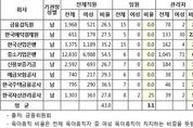 2018. 8월 기준 금융위원회 산하 및 출연기관 여성임원 및 관리자, 육아유직 현황 (단위: 명, %) [비전21] 우리나라는 공공부문에서 고위공무원단 및 공공기관 여성임원목표제 도입과 정부위원회의 여성 참여율이 법정기준인 40%를 넘어서는 등 상당한 성과를 내고 있으나, 금융위원회 산하 및 출연기관의 기관장 중 여성이 기관장인 곳은 단 한 곳도 없는 것으로 나타났다. 국회 정무위원회 소속 더불어민주당 김병욱 의원이 금융감독원으로부터 제출받은 국정감사자료에 따르면, 지난 8월 기준 금융위원회 산하 및 출연기관 8곳의 기관장은 모두 남성이다. 금융위원회 산하 및 출연기관의 전체 직원 중에 여성이 차지하는 비율은 평균 43% 정도였다. 여성직원의 비율이 가장 많은 곳은 중소기업은행으로 전체 직원의 55%를 차지했고, 주택금융공사 37%, 한국산업은행이 35.2%로 뒤를 이었다. 여성직원의 비율이 가장 낮은 기관은 금융감독원으로 전체 직원의 26%만 여성이다. 현재 공공기관의 운영에 관한 법률 에 따르면, 정부는 공공기관의 임원 현황을 공시하도록 규정하고 있고, 여성가족부에서는 양성평등을 위한 정책으로 공공부문 여성대표성 제고에 대한 정책을 실시해 오는 20
