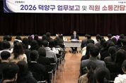 (비전21뉴스) 고양특례시는 지난 26일 덕양구청 대회의실에서 ‘2026년 덕양구 업무보고 및 직원 소통간담회’를 개최했다. 업무보고에는 이동환 고양시장과 주시운 덕양구청장을 비롯해 구청 13개 과·21개 동행정복지센터의 부서장, 8·9급 저연차 공무원 등 100여 명의 직원이 참석했다. 2026년 업무보고는 주시운 덕양구청장과 부서장의 보고를 통해 민선8기 덕양구 핵심 성과와 2026년 업무 추진 방향을 간략히 공유하고, 직원들과의 자유로운 토론 시간을 확대해 현장의 목소리를 청취하는 데 중점을 뒀다. 이날 부서별 업무보고와 관련해 이동환 시장은 ▲덕양구를 대표하는 창릉천 유채꽃·코스모스 축제의 성공적 개최를 위한 주관 부서와 행신2동 행정복지센터의 적극적인 협조 ▲지적재조사 사업 등 시민 불편 해소를 위한 주요 사업의 속도감 있는 추진을 당부했다. 특히 20~30대 직원들과 격의 없이 소통하는 자유토론 시간이 눈길을 끌었다. CES 2026에서 고양시에 도입하고 싶다고 생각한 기술 분야, 전 세계적인 주목을 받은 ‘고양콘’에 대한 궁금증 등 다양한 주제로 활발한 의견 교환이 이어졌다.
