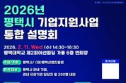 (비전21뉴스) 평택시가 평택산업진흥원과 함께 오는 2월 11일 평택대학교 제2피어선빌딩 6층 대강당에서 ‘평택 중소기업 지원사업 설명회’를 개최한다. 시에 따르면 이번 지원사업 설명회에서는 참석 기업을 대상으로 ▲자금지원 ▲사업화 및 기술 고도화 ▲수출판로개척 및 마케팅 지원 ▲근로 환경개선 등 다양한 분야의 중소기업 지원사업 및 일자리 등 상담 부스도 마련하여 종합적으로 안내할 예정이다. 이번 설명회에는 평택시를 비롯해 진흥원, 경기지방중소벤처기업청, 경기도경제과학진흥원, 경기신용보증재단, 중소기업진흥회 등 21개 지원 관계기관이 참여할 예정이다. 또한 설명회에 참석한 기업인들에게는 각종 지원사업 정보를 한눈에 확인할 수 있도록 중소기업 지원사업 안내 책자를 배부하는 한편, 참석하지 못한 기업을 위해 자료를 시 및 진흥원 누리집에도 게시한다. 특히 반도체산업 혁신 네트워크 조성, 제조 기업 인공지능 전환(AX) 지원 등 교육 사업을 통한 인력양성과 산․학․연․관 협력체계 구축과 더불어, 최근 화제가 되는 인공지능(AI)산업 관련 수요 기반 실증 지원사업을 통한 혁신 역량 강화 및 산업 경쟁력 제고에도 힘쓰며