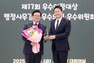 (비전21뉴스) 경기도의회 안전행정위원회 국중범 의원(더불어민주당, 성남4)이 26일 경기도의회 대회의실에서 열린 '2025년 경기도의회 시상식'에서 제17회 우수의정대상을 수상했다. 우수의정대상은 대한민국시도의회의장협의회가 남다른 열정과 헌신적인 의정활동을 통해 지역주민의 복리 증진과 지방자치 발전에 기여한 의원에게 수여하는 상으로, 올해는 경기도의회 의원 44명이 선정됐다. 국중범 의원은 재난·안전 분야를 중심으로 한 성실한 의정활동과 현장 중심의 정책 점검을 통해 도민의 안전과 권익 증진에 기여한 공로를 인정받아 이번 수상의 영예를 안았다. 국 의원은 “이번 수상은 개인의 성과라기보다, 지역 주민과 함께 호흡하며 현장에서 답을 찾기 위해 노력한 결과”라며, “앞으로도 도민의 삶에 실질적인 도움이 되는 의정활동으로 지방자치 발전에 기여하겠다”고 밝혔다. 한편, 이날 시상식은 제17회 우수의정대상 시상과 함께 2025년 행정사무감사 우수의원·우수위원회 시상 등이 함께 진행됐다.