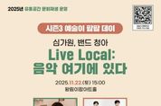 (비전21뉴스) 의왕시 이팝아트홀(의왕시 왕곡로74)이 11월 22일 오후3시, 지역 예술인들이 함께 꾸미는 음악 축제 ‘Live Local:음악, 여기에 있다’를 개최한다. 이번 공연은 지역의 숨은 전문예술인을 발굴·지원하고 예술인 간 네트워크를 형성하기 위해 기획된 무대로, 시민들이 일상 속에서 가까이 음악을 즐길 수 있는 특별한 시간을 선사한다. 무대에는 의왕을 중심으로 활동 중인 밴드 ‘청아’와 싱어송라이터 ‘심가원’이 출연한다. 두 아티스트는 자신만의 감성과 음악 세계를 바탕으로 도시의 일상과 청춘의 순간들 따뜻한 멜로디로 풀어낼 예정이다. 밴드 ‘청아’는 서정적이면서도 에너지 넘치는 사운드와 깊이 있는 보컬, 따뜻한 선율로 관객의 공감을 이끌 예정이다. 심가원은 진솔한 가사와 부드러운 음색으로 사람 사이의 감정을 노래하며 공감을 전한다. 윤은숙 의왕시 문화관광과장은 “이번 공연은 지역 예술인들이 주체가 되어 시민과 호흡하는 뜻깊은 무대”라며 “많은 분들이 지역에서 피어나는 예술의 생동감을 즐기셨으면 좋겠다”고 말했다.