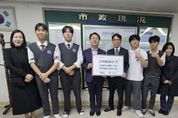(비전21뉴스) 군포e비즈니스고등학교 마케팅과 학생들이 ‘청소년 비즈쿨(Biz-Cool)’ 창업체험 교육을 통해 얻은 수익금 전액을 군포시청에 기탁했다. 학생들은 전문교과 ‘매장판매’ 수업에서 배운 내용을 바탕으로 상품을 직접 기획·판매하며 창업의 전 과정을 경험했으며 이를 통해 얻은 수익금을 자발적으로 모금해 지역의 어려운 이웃을 돕기로 뜻을 모았다. 장인섭 교장은 “배움을 실천으로 이어가며 지역사회에 따뜻한 마음을 전한 학생들이 자랑스럽다”며 “앞으로도 실력과 인성을 겸비한 인재로 성장할 수 있도록 지원하겠다”고 말했다. 군포시 관계자는 “학생들이 스스로의 노력으로 얻은 결실을 지역의 어려운 이웃을 위해 기탁하여 주심에 감사드린다”며 “이러한 청소년들의 선한 영향력이 군포 전역으로 확산되길 바란다”고 말했다. 기탁금은 경기사회복지공동모금회를 통해 군포 관내 저소득 가정 지원에 사용될 예정이다.