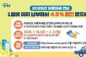 (비전21뉴스) 파주시는 2026년도 자동차세를 1월에 한 번에 납부하는 경우 세액공제 혜택을 받을 수 있는 자동차세 연납 신청·납부를 2월 2일까지 접수한다고 밝혔다. 자동차세는 매년 6월과 12월 2회에 걸쳐 부과되는 후납적 성격의 세금이나, 1월에 연세액을 한번에 납부하는 경우 4.5%를 공제받을 수 있어 납세자의 세 부담을 줄일 수 있다. 특히 1월 연납은 연중 가장 높은 공제율이 적용돼 절세 효과가 크다. 자동차세 연납은 1월 외에도 3월, 6월, 9월에도 신청이 가능하지만, 공제율은 각각 연세액의 3.7%, 2.5%, 1.2%로 점차 낮아진다. 또한 연납 후 차량의 소유권이 이전되거나 폐차·말소되는 경우에는 소유 기간을 제외한 잔여기간에 대한 자동차세를 환급받을 수 있다. 자동차세 연납은 신고·납부가 원칙이지만, 파주시는 납세 편의를 위해 지난해 자동차세를 연납한 차량에 대해서는 별도의 신청 없이 연납 납부서를 발송할 예정이다. 다만, 지난해 연납하지 않았거나 차량을 새로 취득한 경우에는 ▲위택스를 통해 신청하거나, 파주시청 세정과 방문 또는 전화를 통해 자동차세 연납 신청을 할 수 있다.