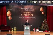 (비전21뉴스) 남양주시는 31일 시청 다산홀에서 직원 400여 명이 참석한 가운데, 한 해의 성과를 공유하고 새로운 도약을 다짐하는 2025년 종무식을 개최했다. 이번 종무식은 △아카펠라그룹 ‘스프링클럽’ 축하공연 △시장 송년사 △우수 공무원 시상 순으로 진행됐으며, 2025년을 함께 완주한 공직자들의 노고를 격려하고 미래 비전을 공유하는 의미 있는 자리로 마련됐다. 행사의 시작을 연 아카펠라그룹 스프링클럽은 ‘Joy to the World’와 국악동요 ‘모두 다 꽃이야’를 선보이며, 따뜻하면서도 희망적인 분위기 속에서 종무식의 막을 열었다. 주광덕 시장은 송년사를 통해 “2025년은 남양주가 미래를 향한 방향을 분명히 설정하고, 실질적인 변화를 만들어 낸 의미 있는 한 해였다”고 평가하며, 시민의 성원과 공직자들의 헌신에 깊은 감사를 전했다. 특히 주 시장은 2025년을 ‘남양주 산업생태계 대전환의 원년’으로 선포하고, AI·디지털 기반 첨단산업 육성을 통해 남양주를 대한민국을 대표하는 미래 산업도시로 성장시키기 위한 기반을 착실히 다져왔다고 강조했다. 또한 “올해는 ‘정약용의 도시
