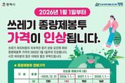(비전21뉴스) 평택시는 2026년 1월 1일부터 쓰레기 종량제 봉투 가격을 3개년도에 걸쳐 인상한다. 그동안 평택시는 인구증가, 물가상승, 생활 쓰레기 수집 운반 처리비용 증가에도 불구하고 2006년 이후 종량제봉투 가격을 동결해 왔다. 시 관계자는 “현재 평택시의 종량제 가격은 경기도 31개 시군 가운데 최하위 수준이며, 청소예산 재정자립도와 주민부담률이 낮아 가격 인상은 불가피하다”고 밝혔다. 따라서, 대표적으로 일반용 종량제봉투 20리터는 현재 500원에서 110원 인상된 610원으로, 음식물 전용 봉투 1.5리터는 현재 40원에서 20원이 인상된 60원으로, 공동주택에 설치된 음식물종량제기기(RFID)는 1㎏ 단위로 현재 48원에서 12원 인상된 60원으로, 경기도 내 31개 시군 평균 가격을 반영하여 인상안을 마련했다. 다만, 서민경제의 어려움과 시민부담을 고려하여 가격 인상은 3개년도에 걸쳐 단계적으로 시행할 예정으로, 시 관계자는 “종량제봉투 가격 인상에 대한 시민 여러분의 많은 이해와 협조를 부탁드린다”며 “앞으로도 쾌적하고 청결한 도시환경 조성은 물론 질 높은 청소행정 서비스 제공
