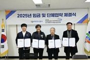 (비전21뉴스) 여주도시공사와 민주노총 공공운수노조 여주도시공사지회는 12월 9일 여주도시공사 사옥에서 2025년 임금 및 단체협약 체결식을 개최했다고 밝혔다. 이번 협약은 상호 신뢰와 존중을 바탕으로 진행된 성실한 교섭의 결실로, 노사 상생과 지속 가능한 발전을 위한 중요한 발판이 될 전망이다. 공사와 노동조합은 이번 협약을 통해 직원들이 안정적인 근무여건 아래 역량을 발휘할 수 있는 환경을 조성하고, 공공기관으로서 사회적 책임을 다하기 위한 제도 개선과 협력 체계를 강화해 나갈 방침이다. 임명진 사장은 “이번 임금·단체협약은 노사 간 소통과 이해를 바탕으로 이루어낸 결실”이라며, “앞으로도 신뢰 기반의 노사 협력을 통해 시민에게 더 나은 공공서비스를 제공할 수 있도록 노력하겠다"고 밝혔다. 여주도시공사는 앞으로도 합리적인 노사관계 정착을 위해 소통과 협력을 강화하고, 시민 중심의 공기업으로서 책임과 역할을 다하기 위한 다양한 노력을 이어갈 계획이다.