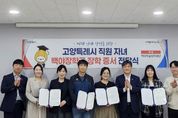 (비전21뉴스) 고양특례시는 지난 22일 ‘백야학술장학재단 장학금 전달식’을 개최해, 고양시 직원의 대학생 자녀 중 학업성적이 우수하고 타의 모범이 되는 인재 4명에게 장학증서와 장학금을 전달했다. 이번 장학금 전달식은 백야학술장학재단의 장학생 추천 요청에 따라 진행됐다. 시는 2026년 현재 대학에 재학 중인 직원의 자녀 중 품행이 단정하고 성적이 우수한 4명을 선발해 재단에 추천했으며, 최종 선발된 학생들에게 1인당 100만 원의 장학금과 장학증서를 전달했다. 전달식에는 자녀를 대신해 참석한 부모들이 함께했으며 “자녀들이 장학금 수여를 계기로 학업에 더욱 매진해 사회 발전에 기여하는 인재로 성장하길 바란다”며 감사의 뜻을 밝혔다. 한편, 백야학술장학재단(이사장 김병희)은 2001년부터 장학사업을 펼쳐온 공익법인으로 모범적인 학업 태도로 귀감이 되는 학생에게 매년 장학금을 지급하고 있다. 특히, 2003년부터 고양시청 소속 직원 자녀에게 지속적으로 장학금을 후원하며 지역사회 인재 양성에 기여하고 있다. 고양시 관계자는 “어려운 경제 여건에서도 기업 이윤의 사회 환원이라는 가치를 실천하