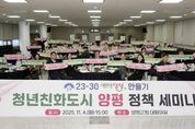 (비전21뉴스) 양평군은 지난 4일 오후 3시 양평군청 대회의실에서 ‘청년친화도시 조성을 위한 미래 방향성과 차별화 전략’을 주제로 ‘23-30 매력 양평 만들기’ 정책세미나를 개최했다. 이번 세미나는 청년이 머물고 싶은 도시, 청년이 주도적으로 참여할 수 있는 ‘매력양평’ 구현을 위한 실질적인 정책 방향을 논의하고자 마련됐다. 이날 행사에는 전진선 양평군수를 비롯해 양평군의회, 양평군 정책자문단, 청년정책위원회, 청년단체 등 관계자 100여 명이 참석했다. 1부에서는 인사말씀과 축사, 기념촬영이 진행됐으며, 2부에서는 손신 교수(아신대학교, 양평군 정책자문단 위원)의 ‘청년친화도시 조성을 위한 미래 방향성 및 차별화 전략’과 길청순 이사장(지역농업네트워크 서울경기제주협동조합, 양평군 정책자문단 위원)의 ‘농업·농촌의 미래와 청년농업인’ 발제가 이어졌다. 전진선 양평군수는 “청년이 머물고 싶은 도시, 청년이 주도적으로 참여할 수 있는 ‘매력양평’을 만들기 위해 행정과 지역사회가 함께 힘을 모아야 한다”며 “오늘 세미나에서 제시된 다양한 의견을 향후 청년정책에 적극 반영하겠다”고 밝혔다. 한편, 양평