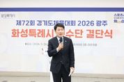 (비전21뉴스) 화성특례시의회는 26일 화성종합경기타운 3층 라운지홀에서 열린 제72회 경기도체육대회 화성시 선수단 결단식에 참석해 선수단을 격려하고 4연패 달성을 위한 결의를 다졌다. 이날 행사에는 배정수 의장을 비롯해 김종복 문화복지위원장, 송선영·이용운 의원, 화성시체육회 임원과 종목단체 관계자, 선수단 등 약 150여 명이 참석했다. 이날 결단식은 경기도체육대회 출전을 앞둔 선수단의 사기를 높이고 각오를 다지는 자리로 마련됐다. 화성특례시 선수단은 오는 4월 16일부터 18일까지 광주시 일원에서 열리는 제72회 경기도체육대회에 출전한다. 육상, 수영, 축구 등 27개 종목에 참가해 종합우승 4연패에 도전한다. 배정수 의장은 “묵묵히 쌓아온 훈련의 시간과 노력을 믿고 끝까지 당당하게 경기에 임해주시기 바란다”며 “선수 여러분의 땀과 투혼이 화성특례시의 자부심”이라고 말했다. 이어 “화성특례시의회도 선수들이 오직 경기에 집중할 수 있도록 체육 환경 조성과 지원에 최선을 다하겠다”며 “4연패 달성을 진심으로 기원한다”고 덧붙였다. 화성특례시의회는 선수들이 충분한 기량을 펼